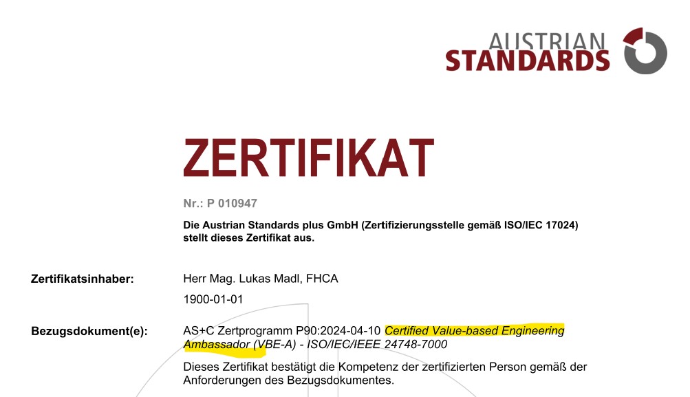 Our VBE Training equips your teams to embed ethics into system design using Prof. Dr. Sarah Spiekermann’s Value-Based Engineering approach and the ISO/IEC/IEEE 24748-7000:2022 standard.